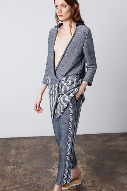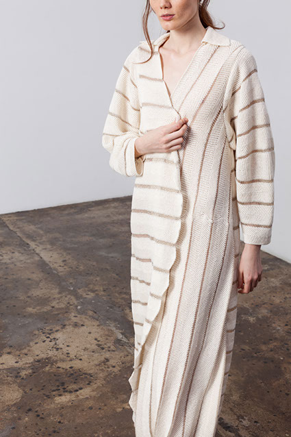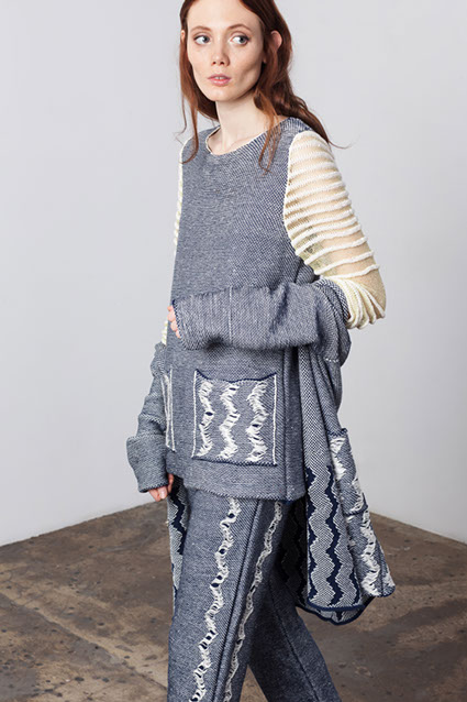 The second source of inspiration was Alexander Calder kinetic sculptures. Weaving in collection imitate of sculptures movement.